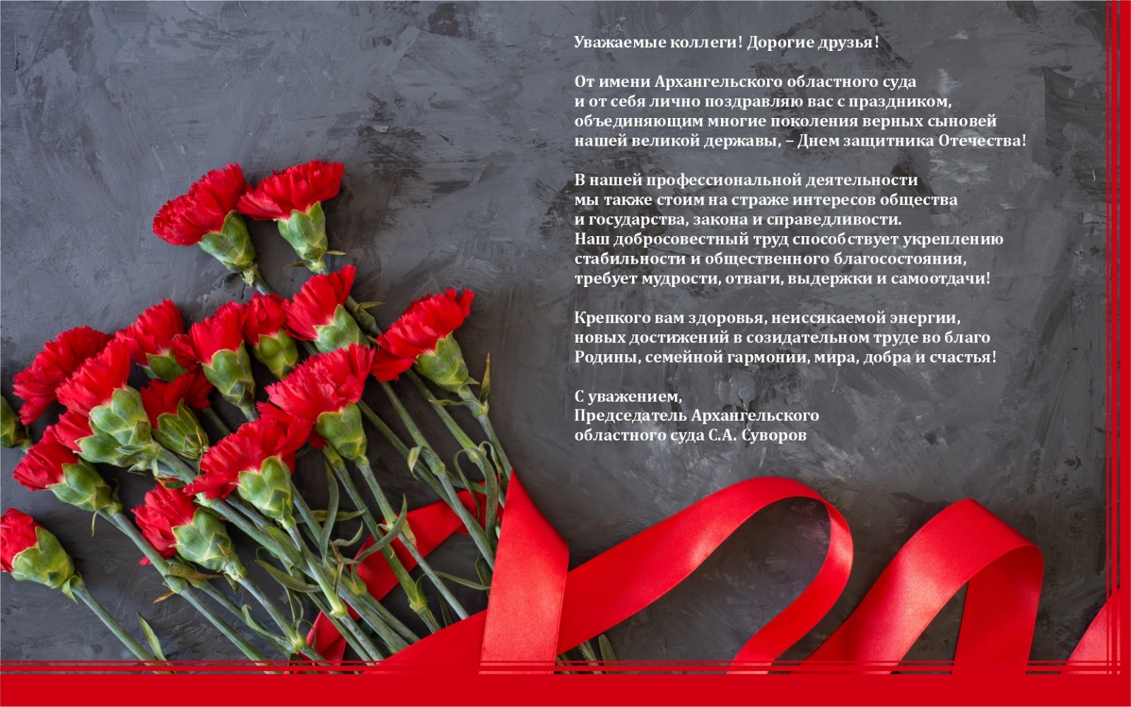 Поздравление председателя Архангельского областного суда С. А. Суворова с Днем защитника Отечества