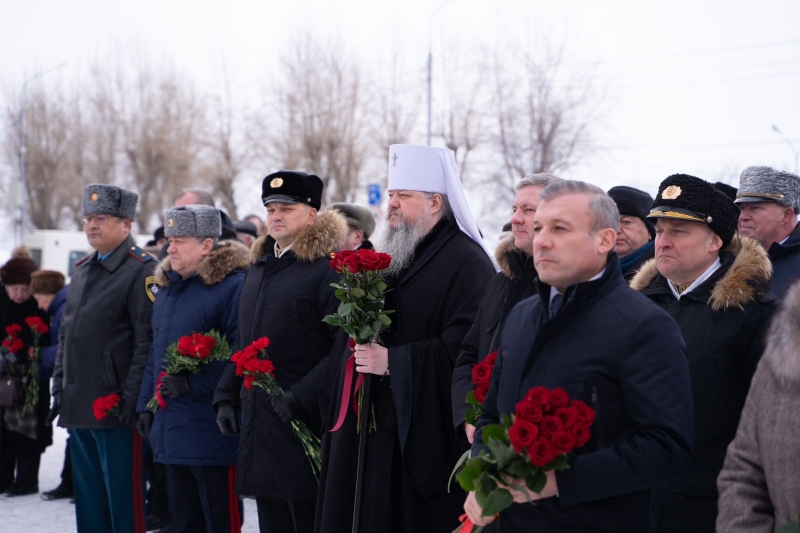 Митрополит Корнилий в День защитника Отечества возложил цветы к монументу Победы в Архангельске