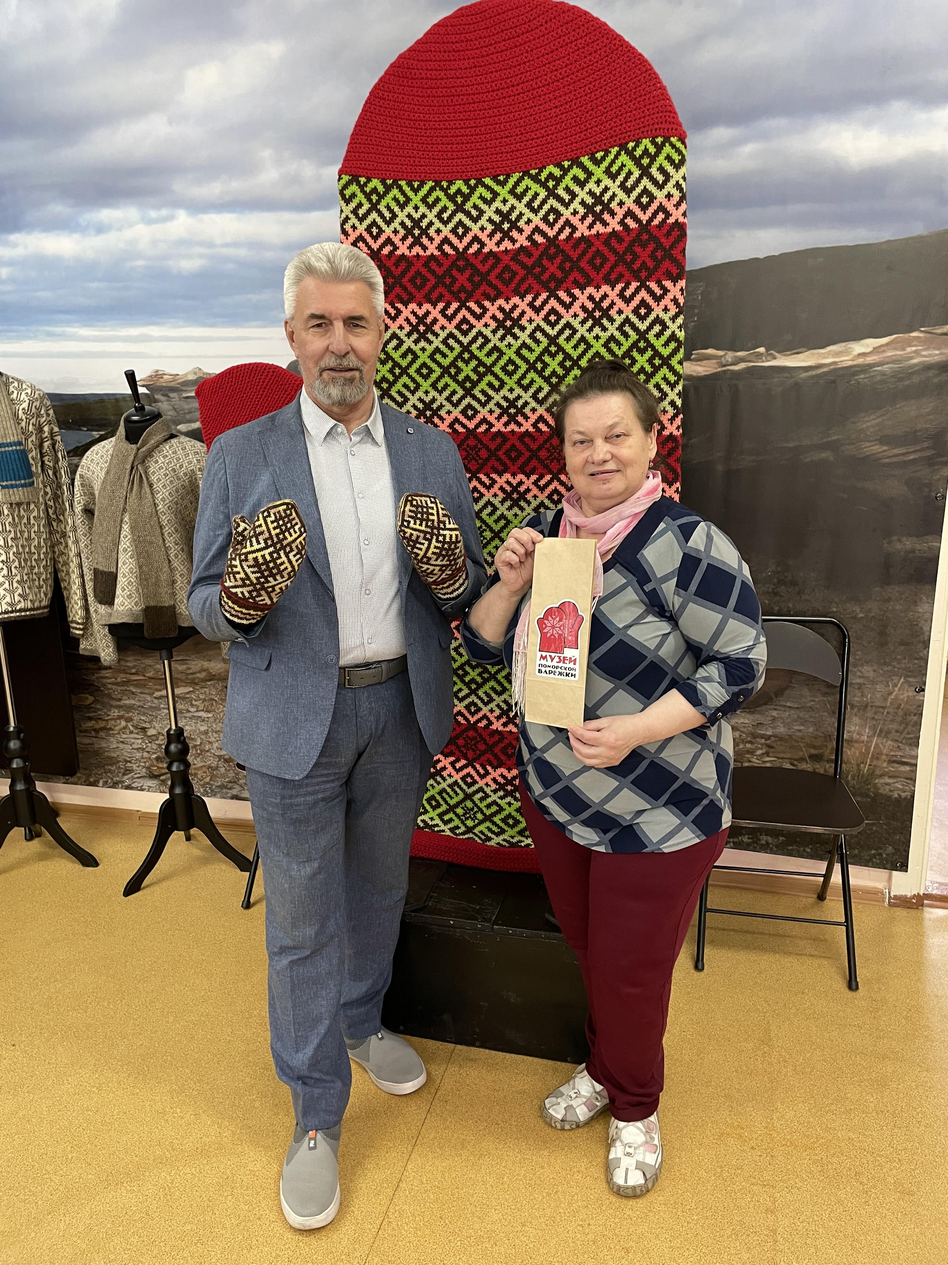 Председатель Общественной палаты Архангельской области Юрий Сердюк встретился с известной северной мастерицей Галиной Челпановой в Музее поморской варежки в городе Новодвинске.