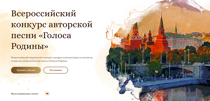Российский музыкальный союз при поддержке Министерства культуры РФ объявил о старте Всероссийского творческого конкурса молодых композиторов и поэтов «Голоса Родины».