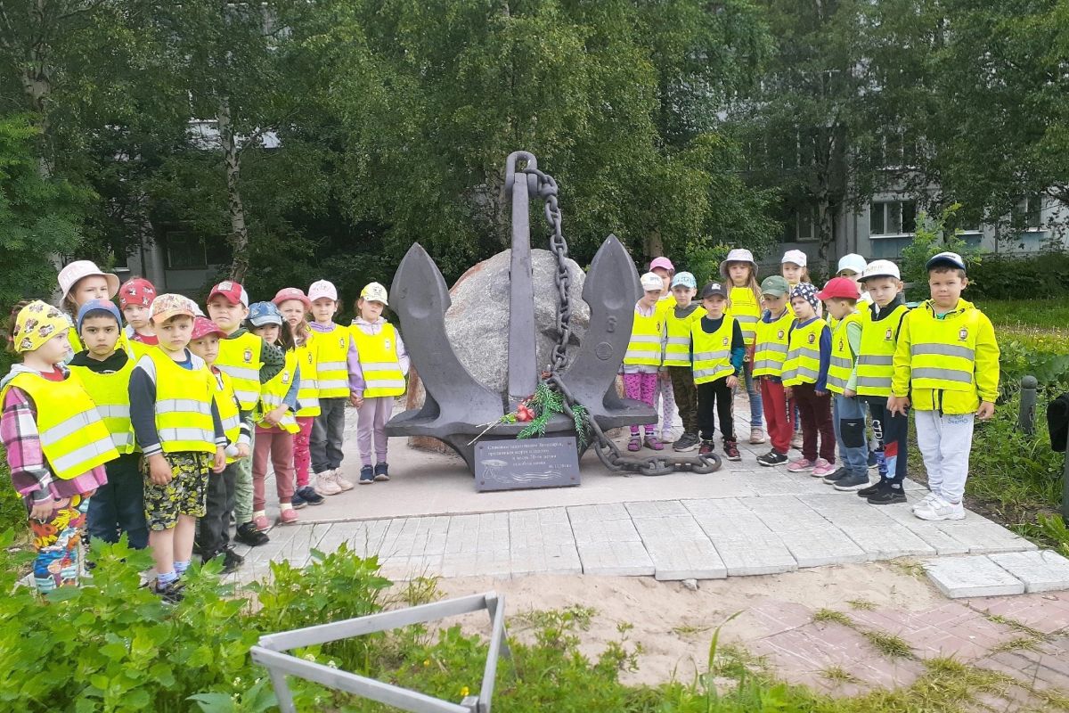 Первое памятное место, которое посетили ребята это памятный знак «Якорь». Они узнали, что мемориал посвящен «Славным защитникам Заполярья, преданным морю и скалам».