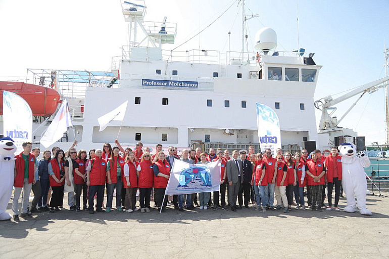 Сегодня на причале морского-речного вокзала Архангельска состоялась торжественная церемония отправки судна «Профессор Молчанов» в рейс. На борту 55 человек, это студенты, аспиранты, сотрудники исследовательских центров России.