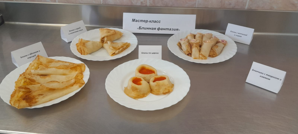 Мастера-наставники проявляют творческий потенциал , из поколения в поколение передают студентам секреты приготовления национального русского блюда- блинчиков.Совместно со студентами на мастер-классе были приготовлены блинчики с начинками в современной интерпретации: блины "по-царски", блины с курицей в сливочном соусе, блинчики с творогом и изюмом, блины с ветчиной и сыром, блины с яблоком и корицей.