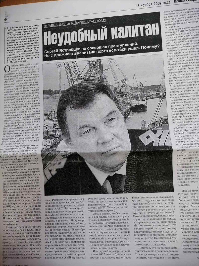 В Лос-Анджелесе встретились второй помощник и радистка парохода "Ненец", пришедшего из Владивостока. Встретились, чтобы не расставаться всю жизнь. Валентина Никифоровна 1921 года рождения, окончила курсы радистов при Севморпути и с 1941 года вместо романтической мечты работать на полярной станции, попала на торговые суда. Работала в экипаже Анны Ивановны Щетининой. В Архангельск из Америки возвратились вместе Северным морским путём. Продолжали работать вместе на судах "Петровский", "Игарка". Перевозили военные и народохозяйственные грузы в пункты Белого, Баренцева и Карского морей. Валентина Никифоровна осуществляла надёжную связь с берегом и судами конвоев. Её заслуги отмечены орденом Отечественной войны 2 степени, медалью "За победу над Германией в Великой Отечественной войне 1941-1945 г.г" и другими наградами. Только с рождением сына в 1946 году Валентина сошла на берег. Сына, назвали Сергеем предугадывая, что ему стоять на капитанском мостике. В 1970 году. Сергею Александровичу Ястребцеву было присвоено звание "Лучший капитан Министерства морского флота." Капитан Сергей Александрович Ястребцев за самоотверженный труд на море дважды награждался орденом Трудового Красного Знамени, а также орденом Ленина и медалью - "Участнику национально-революционной войны в Испании 1936-39г.г". Сын Сергей Сергеевич Ястребцев в 1970 году успешно окончил судоводительское отделение Архангельского мореходного училища и ходил на судах заграничного плавания. В 1979 - 1980 годах принимал участие в 25-й Советской Антарктической экспедиции на теплоходе "Пионер Эстонии". В 1986-1989 годах работал в Сирии представителем министерства морского флота. Вернувшись на родину, Сергей Сергеевич возглавил отдел внешних связей пароходства, а затем до 2001 года ходил капитаном на судах иностранных компаний. Сергей Сергеевич Ястребцев постоянно встречался с курсантами училища, был у выпускников председателем Государственной комиссии, участвовал в работе Морской квалификационной комиссии Регионального центра ДПО. Сергей Сергеевич, награждён орденом "Дружбы народов", Звездой мореплавателя -"За доблесть и заслуги", Почётными грамотами ММФ и МИД, знаками. "Почётный работникММФ" и "Почётный работник транспорта Российской Федерации." Внук Дмитрий Сергеевич Ястребцев родился в 1978 году, окончил Архангельское мореходное училище в 1998 году. Служил в пограничных войсках, был участником Чеченских событий. Работает на судах фирмы "Вилсон".