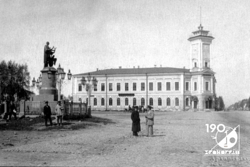 На фото: Здание Архангельской городской думы (сейчас в этом здании расположен Северный государственный медицинский университет), пристройка с читальным залом появится слева.