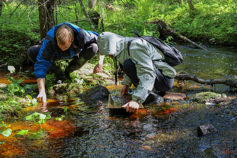 По завершении полевых работ были практические занятия по проведению шлихоминералогических анализов. Работы проводились на ручье Гвардейский, который нахо-дится в 40 квартале Онежского сельского участкового лесничества и протекает по территории Онежского лесного участка САФУ. В полевых условиях студенты получили предварительные результаты — серые шлихи, которые будут обработаны и проанализированы в процессе написания отчета по практике.