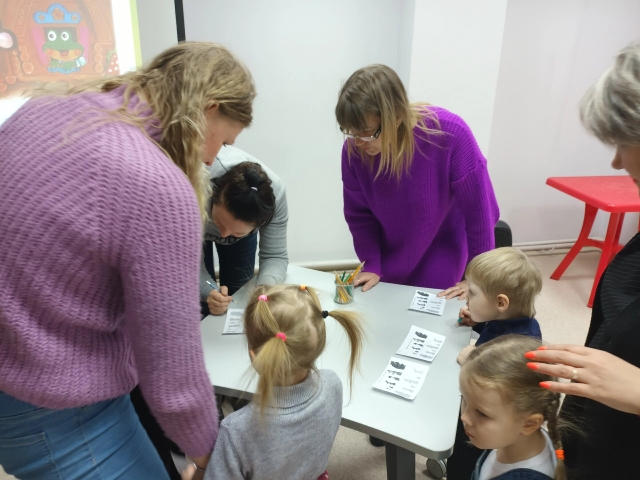 В декабре состоялось первое занятие. На встрече ребята и мамы узнали, что есть несколько вариантов известной народной сказки «Теремок». Послушали сказку в обработке М. Булатова, посмотрели отрывки из мультфильмов снятых по сказке, рассматривали иллюстрации. Отвечали на вопросы викторины, выполняли различные творческие задания. На мастер-классе смастерили поделку «Мышка с сыром».