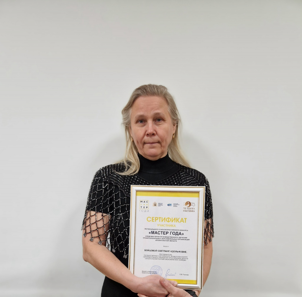 В рамках Года педагога и наставника идет выявление и развитие лучших педагогических практик в системе СПО. Преподаватель Бойцова Светлана Адольфовна приняла участие в региональном этапе Всероссийского конкурса «Мастер года» среди мастеров производственного обучения профессиональных образовательных организаций Архангельской области. Конкурс «Мастер года» – отличная возможность для преподавателей и мастеров производственного обучения со всей страны продемонстрировать свой талант наставника и профессионализм. Поздравляем Светлану Адольфовну с успешным участием в данном конкурсе! #ГПН_2023 #ГодПедагогаНаставника
