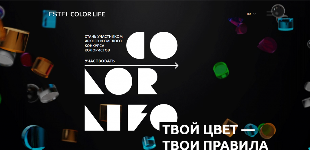 "ESTEL COLOR LIFE – это творческая площадка, которая дает возможность рассказать миру то, как ты его видишь." https://estelcolorlife.ru/#colors-part