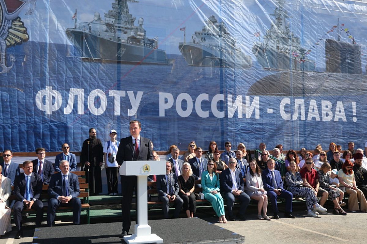 «Перед Военно-Морским Флотом России всегда стояла сверхважная задача – быть на страже национальных интересов государства. И во все времена наш флот справляется с возложенной на него миссией благодаря тому, что на нём несут службу исключительно сильные духом люди, преданные своей Родине», – отметил глава региона. – «Мы на протяжении десятилетий храним память о героях Великой Отечественной войны, которые не только на суше и на море отстаивали независимость Родины, но и в тылу, непосредственно здесь, на Севере, приближали Победу, ремонтировали и строили корабли. Это был трудовой подвиг, который хранят и приумножают сегодняшние кораблестроители Северодвинска, создавая для Военно-морского флота возможность безупречно, быстро, точно и эффективно давать отпор всем, кто пытается посягнуть на наш суверенитет и независимость».