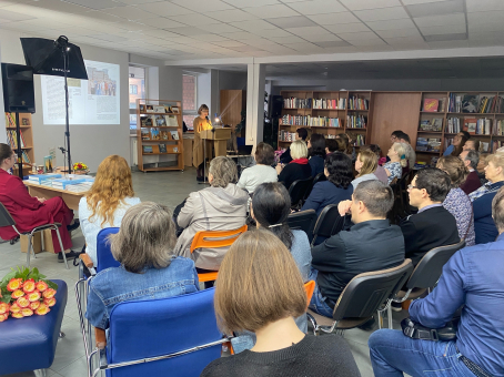 Автор рассказала собравшимся об издании. Анна Борисовна отметила: « Я рассматриваю Русский Север как модель русского мира ». Монография продолжает серию изданий А. Б. Пермиловской о культуре Русского Севера и посвящена деревянному храму в традиционной культуре.