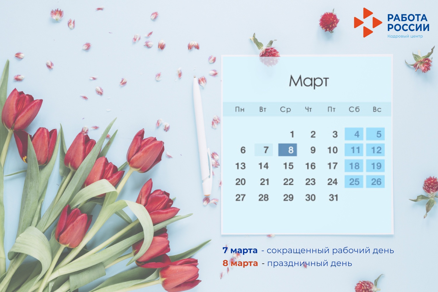 Предпраздничный рабочий день во вторник 7 марта будет сокращен на 1 час.
