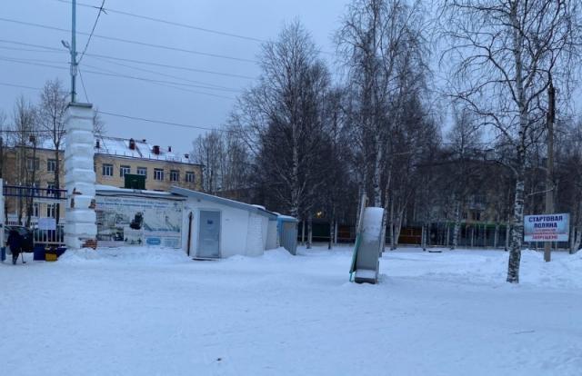 Припрятали его щитом со схемой лыжных трасс на стадионе "Север". Мягко говоря, странное решение.