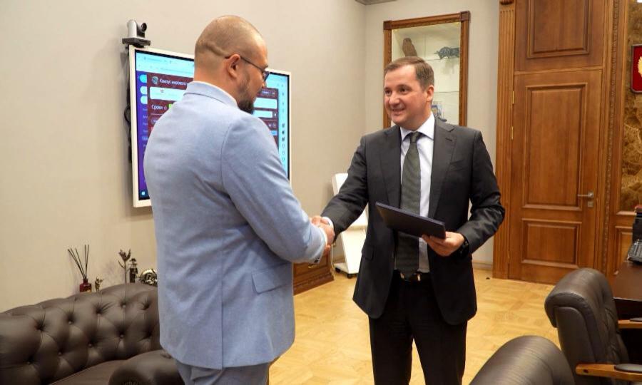 Александр Цыбульский вручил главе Новой Земли Андрею Симовину благодарственное письмо Президента России