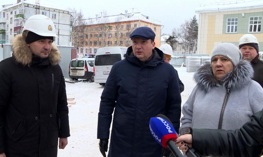 Глава Поморья Александр Цыбульский проверил ход работ по возведению новой школы в Катунино