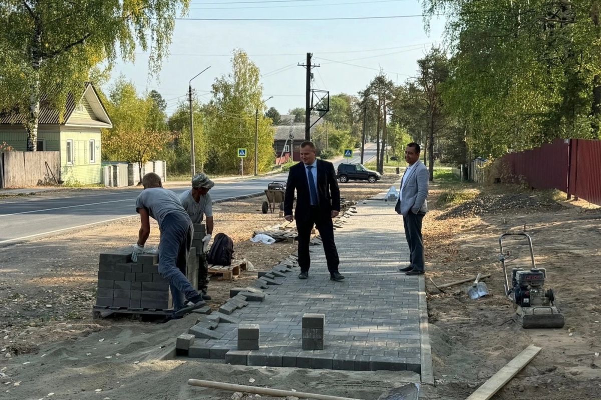 Глава района Андрей Гуляев и глава городского поселения «Вельское» Андрей Дьячков осмотрели готовность объекта благоустройства.