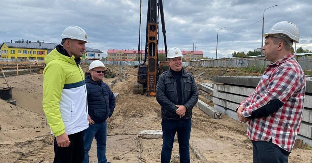Стройплощадку посетил министр строительства и архитектуры Архангельской области Владимир Полежаев.