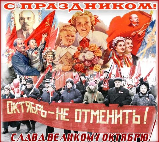 Долгие годы мы отмечали 7 ноября как массовый праздник, - в этот день в городах и селах проходили демонстрации под красными знаменами, под которые вставали люди разных поколений. С красными знаменами мы в 1945 году победили фашистов, вдохновленные подвигом тех самых революционеров, что брали Зимний. И так продолжалось вплоть до 1991 года, когда у нас предательски украли нашу Родину - Советский Союз.