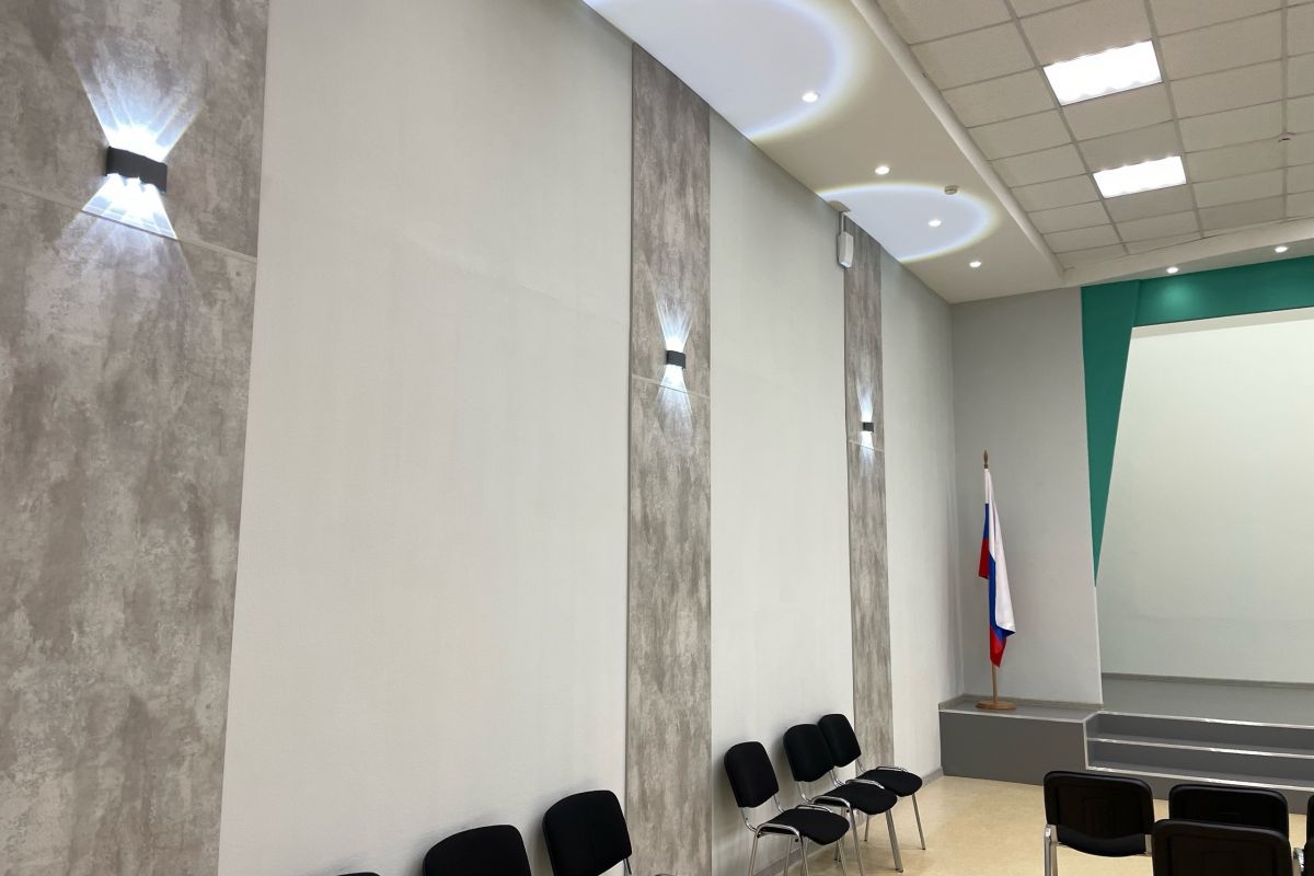 Директор учебного учреждения Марина Подшивалова показала народным избранникам недавно отремонтированный актовый зал. Помещение стало светлым с современными дизайнерскими решениями, а сцену удалось сделать более низкой и просторной.