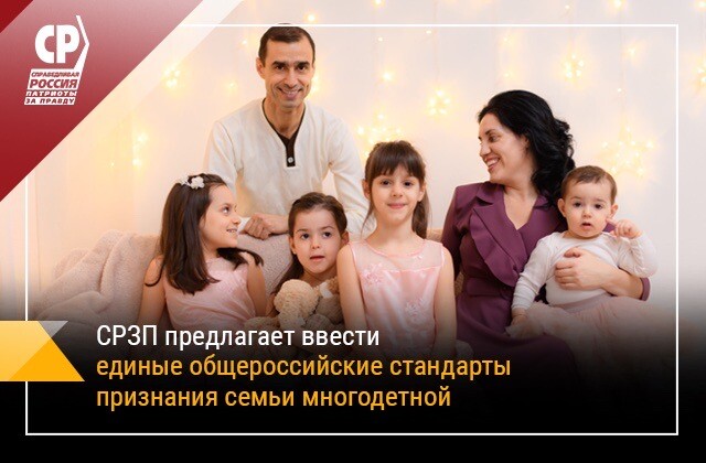 СРЗП предлагает законодательно закрепить единые общероссийские стандарты признания семьи многодетной.