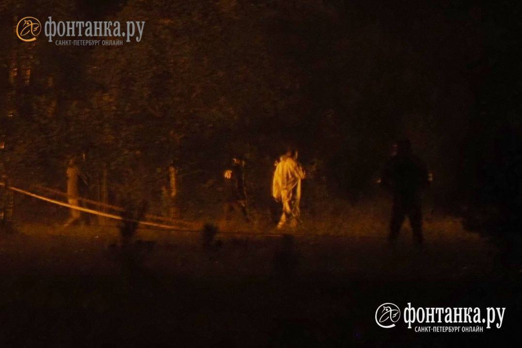 На месте падения самолета сейчас работают сотрудники спецслужб: Следственный комитет, ФСБ и полиция. Они ходят с фонариками - осматривают и патрулируют территорию.