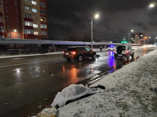 В Архангельске сотрудниками полиции устанавливаются обстоятельства дорожно-транспортного происшествия, в котором погиб человек. На месте аварии работают сотрудники Госавтоинспекции и следователи.