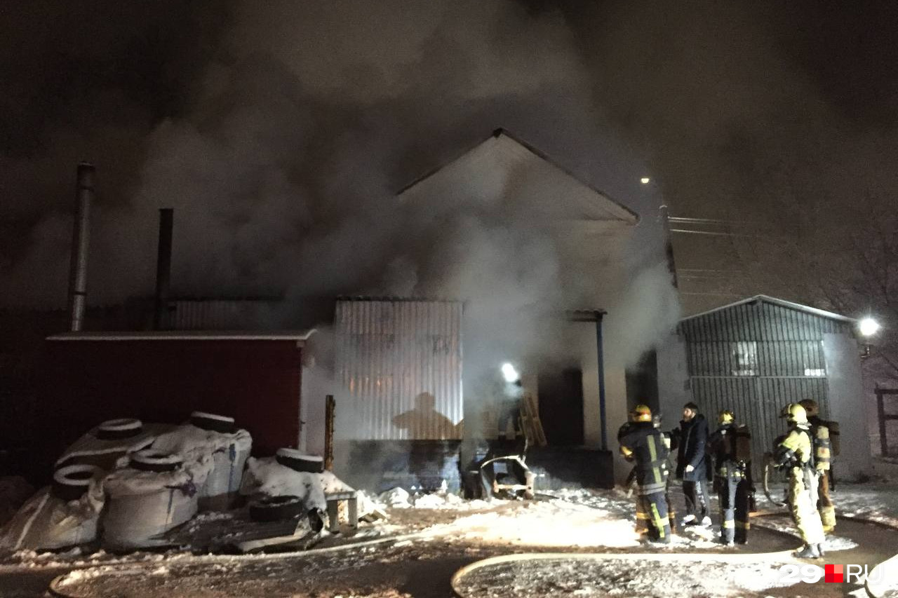 В этот же день спасатели Архангельска тушили серьезный пожар в гаражах на улице Чапаева , недалеко от железнодорожного моста.