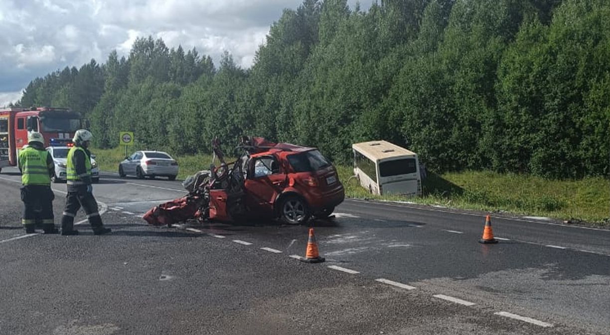 По предварительным данным УМВД России по Архангельской области, на месте происшествия погибла женщина, которая была за рулем легковушки. Водитель и два пассажира автобуса госпитализированы.