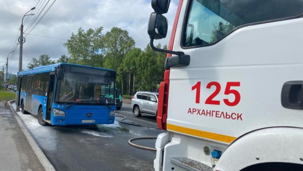 В Архангельске у областной детской больницы загорелся автобус: там были пассажиры