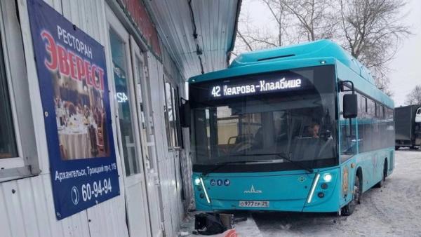 Въехал в торговый павильон: в Архангельске очередная авария с новым автобусом
