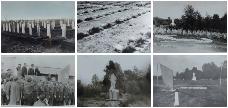 По снимкам видно, что захоронение пережило разные времена: было с деревянными памятниками, затем бетонными плитами, клумбами. В 1992 году были уточнены списки бойцов. На этапе подготовки в прошлом году мы провели сверку данных, чтобы на новых табличках полностью указать фамилию, имя, отчество каждого бойца, его звание и при наличии сведений – даты жизни. Ранее были лишь инициалы и фамилия.