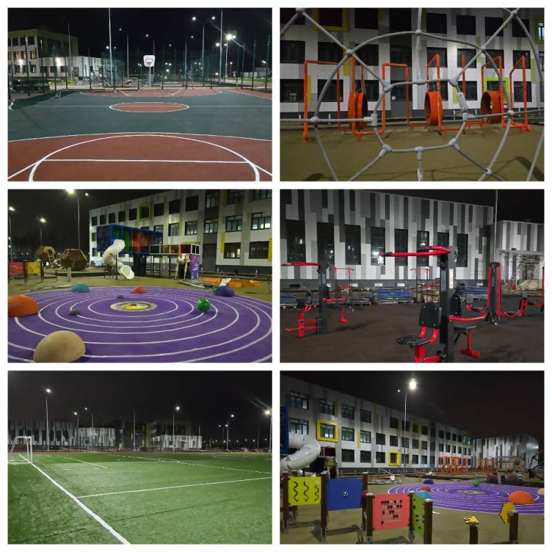 В рамках строительства новой школы особое внимание было уделено не только учебным классам, но и созданию современных спортивных объектов. На территории школы предусмотрены: