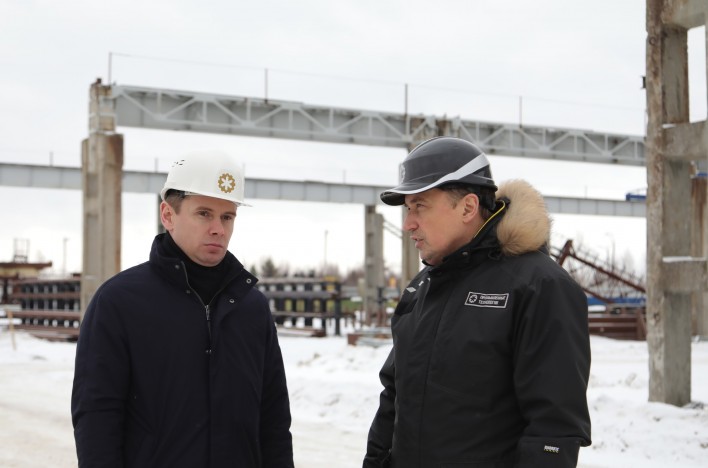 Главе Северодвинска Игорю Арсентьеву и его заместителю по финансово-экономическим вопросам Олегу Бачерикову показали производственные цеха и строительно-монтажные площадки для сборки и испытания продукции.