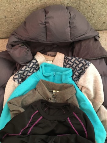 Несколько тонких свитеров, надетых друг на друга, согреют эффективнее, чем один толстый. Так создаются воздушные прослойки, способные удерживать тепло. Хороший результат даёт чередование фактур и материалов. Сначала можно надеть термобельё: оно удерживает тепло и препятствует проникновению холодного воздуха, а также отводит влагу от тела, что крайне важно для согревания. Следом - шерстяной джемпер, свитер или водолазку, потом - кофту из флиса. Если нужно провести на морозе длительное время, то - ещё один предмет одежды из шерсти. И только потом - верхнюю одежду.
