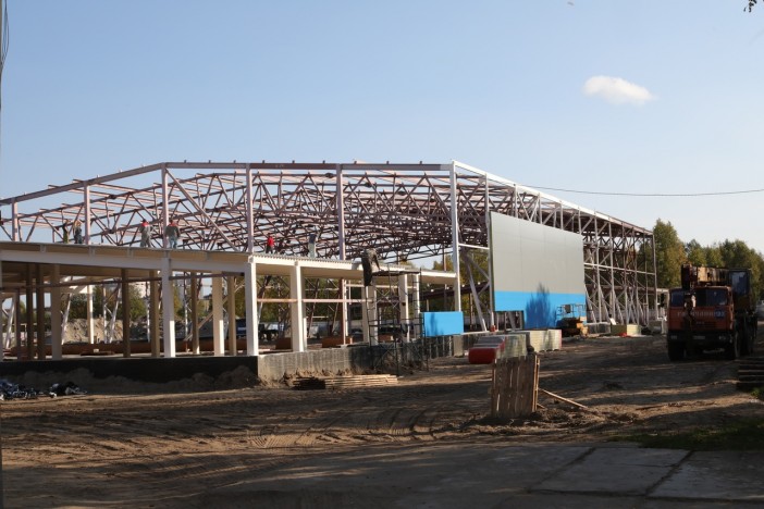 На площадке работает северодвинская фирма ООО «СтройЦентр» в рамках муниципального контракта стоимостью более 513 миллионов рублей.