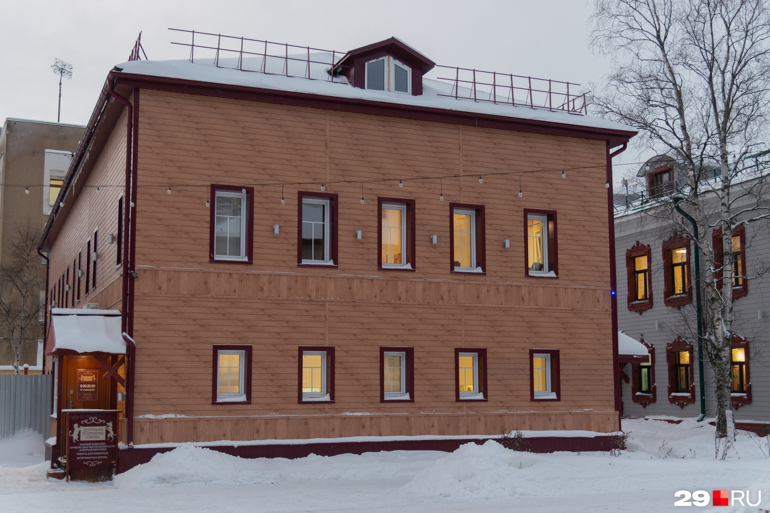 В Архангельске обновили здание ветеринарной клиники (работы еще идут, но главный фасад уже не за забором). Оно находится на главной туристической улице города — проспекте Чумбарова-Лучинского. Когда ремонт был в самом разгаре, администрация обратилась в суд — возникло подозрение, что собственник здания надстраивает третий этаж без согласования. Что из этого вышло — читайте к колонке администратора паблика «Архангельск: архитектура и градостроительство» Влада Дреко.