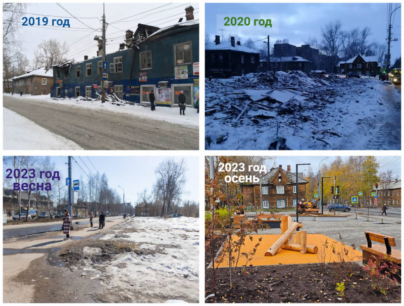 На углу пр. Советских космонавтов и ул. Гагарина в декабре 2019 года сгорел деревянный дом. В течение месяца после пожара остатки дома были разобраны, и на этом месте оставался пустырь. Как и обещала администрация города, земельный участок был отдан не под застройку, а для организации малого сквера.