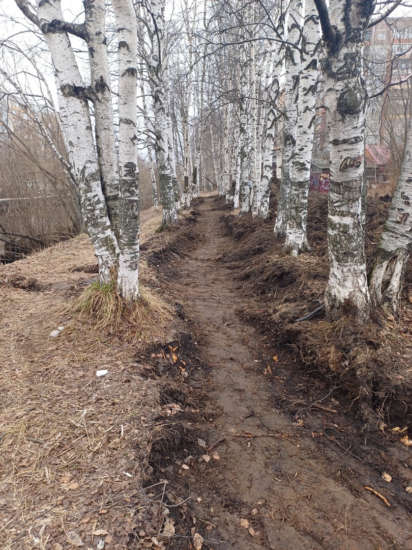 Выявлены многочисленные повреждения корней и коры берез, спиливание корней, что приведет к усыханию деревьев.