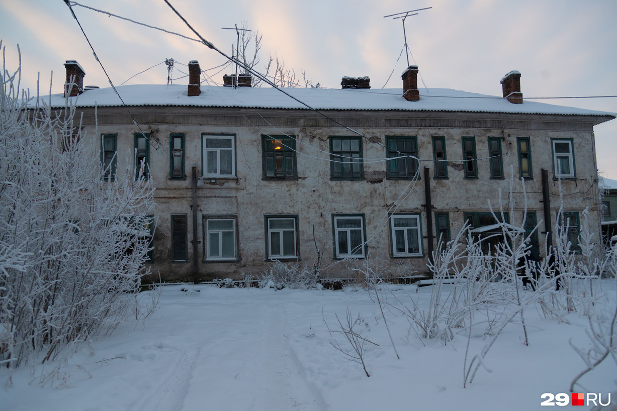 Еще мы показывали дом в Соломбале, который был построен еще в Российской империи, и сейчас в этом здании всё еще живут люди .
