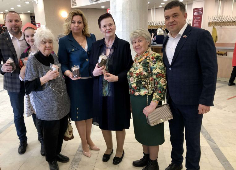 Депутаты поздравили присутствующих и подарили им освященные куличи, которые испечены на «Северодвинском хлебокомбинате». Собравшиеся получили благословение протоиерея Сергия, благочинного всех храмов Северодвинска.