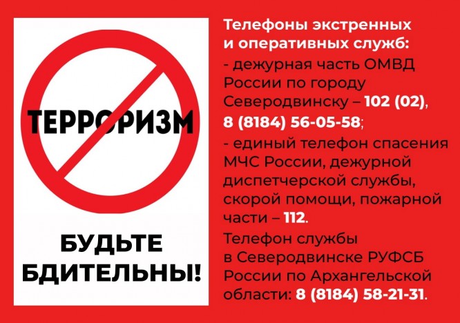 - дежурная часть ОМВД России по городу Северодвинску: 102 (02), 8 (8184) 56-05-58;