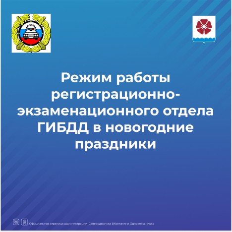 Регистрационно-экзаменационный отдел ГИБДД ОМВД России по городу Северодвинску информирует о режиме работы в период новогодних каникул.