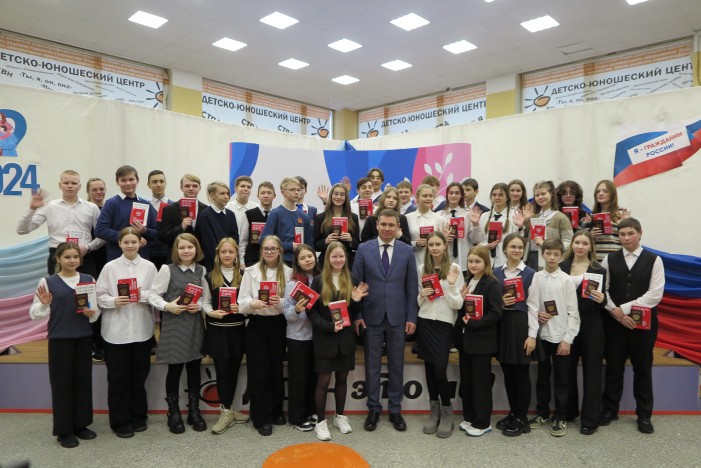 На мероприятии состоялась торжественная церемония вручения паспортов. Свои первые документы из рук главы Северодвинска Игоря Арсентьева получили 36 подростков. Вместе с паспортами ребятам вручили главный документ страны - Конституцию Российской Федерации.