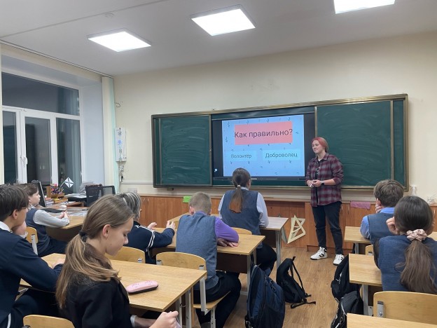 Специалист МЦ, представитель Центра развития добровольчества города корабелов Виктория Воронцова побывала в лицее № 17, где рассказала ребятам, кто такой волонтёр, чем он занимается, и как присоединиться к движению.