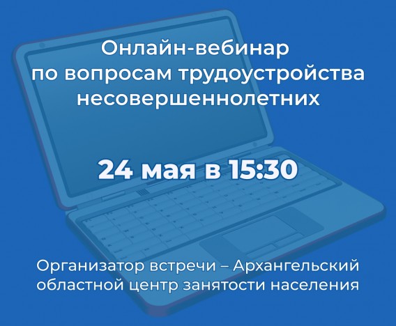 24 мая с 15:30 до 16:30 пройдёт онлайн-вебинар, посвящённый вопросам трудоустройства несовершеннолетних.