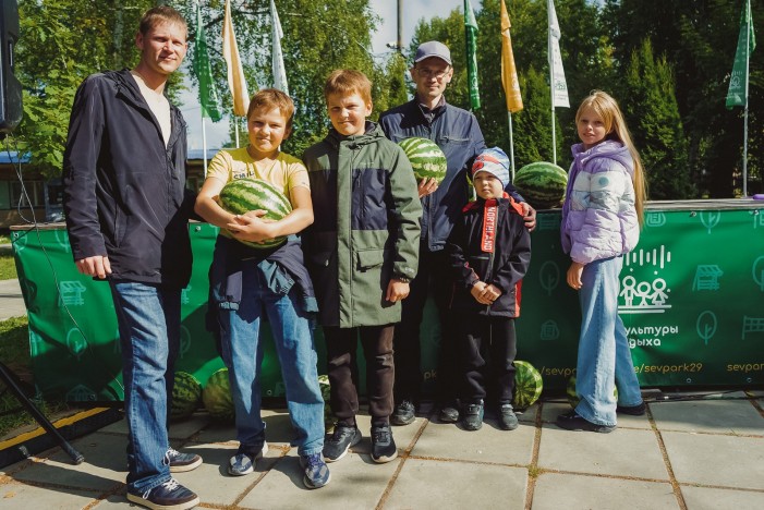 Самые активные гости парка получили в подарок арбузы от спонсора мероприятия.