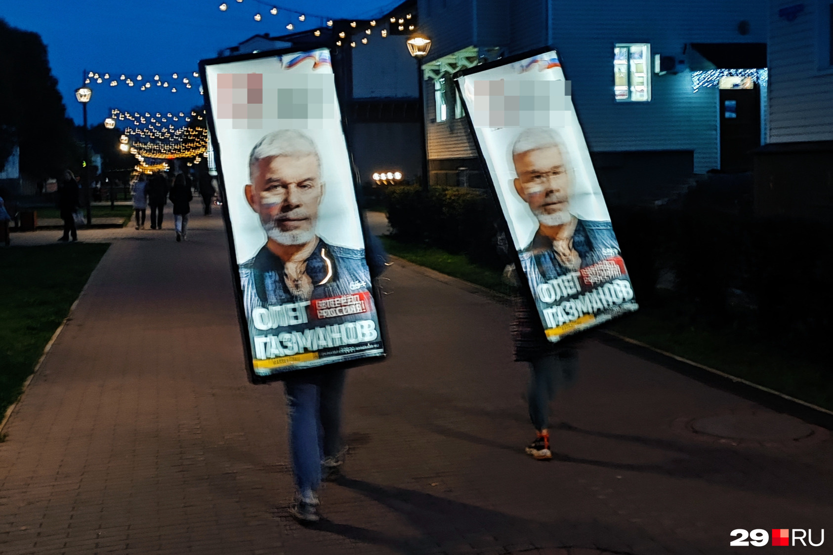 Вечером 29 сентября жители Архангельска встретили на проспекте Чумбарова-Лучинского двух человек, которые рекламировали концерт певца Олега Газманова. На них были надеты афиши, которые светились в темноте.