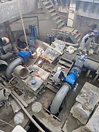 На центральной канализационно-насосной станции Архангельска на улице Нагорной завершен важный этап реконструкции: заменены на входе и выходе трубы напорного и самотечного коллекторов больших диаметров (1200 и 900 мм), запущены в работу новые насосы.