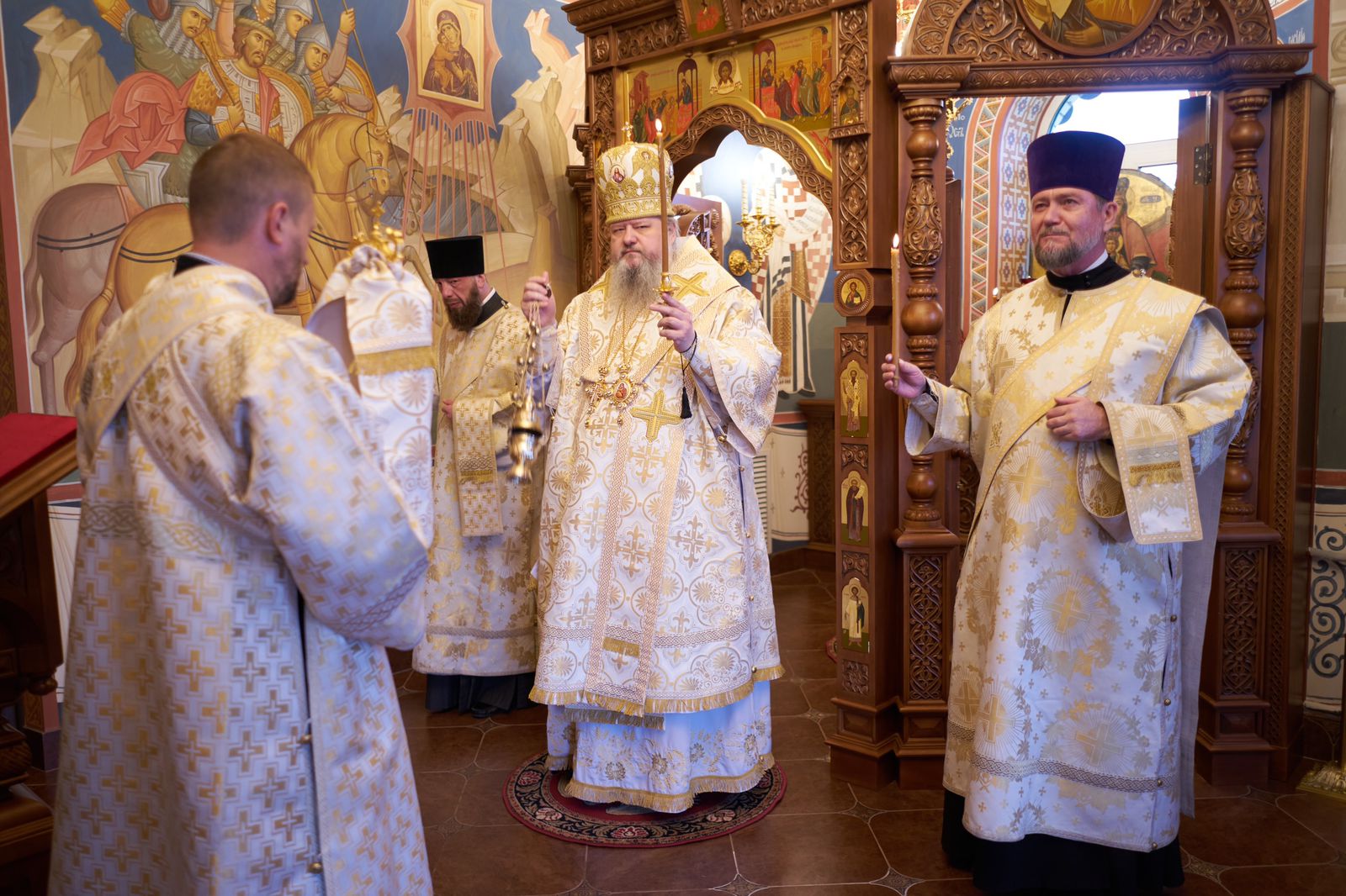 Архипастырю сослужили священники Дионисий Клименко и Николай Герасимов, а также протодиакон Константин Захаров и иеродиакон Георгий (Исаков). Пело трио певчих архиерейского хора (регент Татьяна Горшкова).