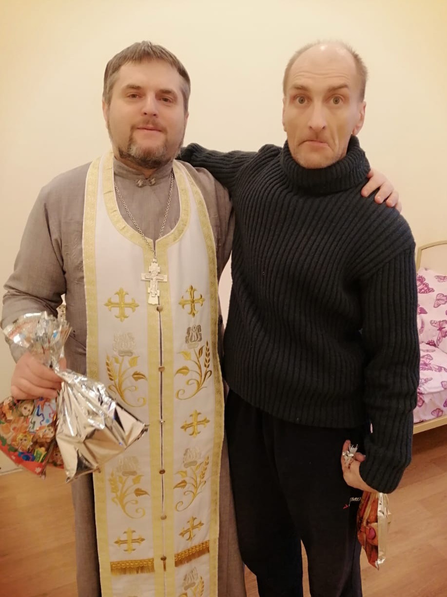 Настоятель архангельского храма святителя Тихона священник Василий Лапко в святочные дни посетил подопечных архангельского пансионата «Опека».